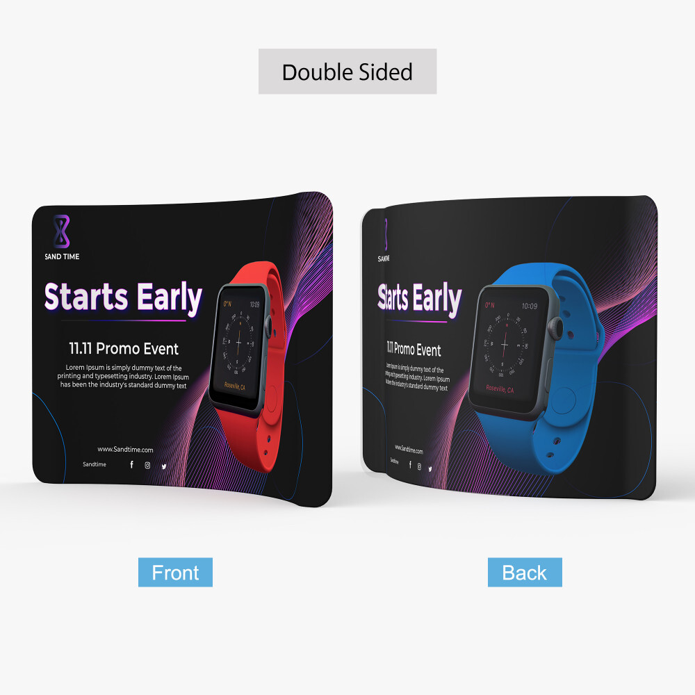 Our tension displays consist of a lightweight but durable aluminum hardware and a fabric dye sublimated print. The hardware is inserted inside the print, much like a pillow into a pillowcase. The fabric print is stretched tight across the frame and zipped close.