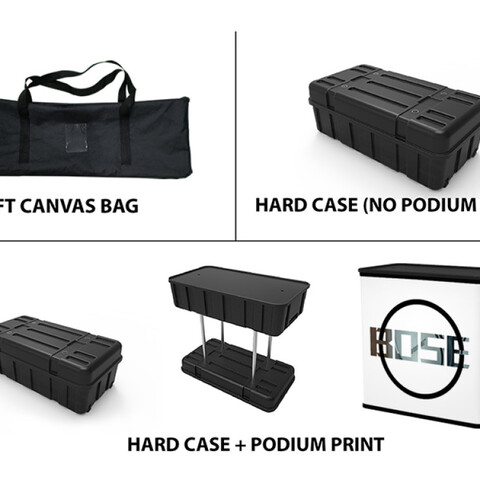 Featuring a flat tension fabric backwall display, a tension fabric header, a literature and brochure stand, a television monitor bracket and display stand, and a podium (with included carrying case), this unique booth has the ability to engage any audience.