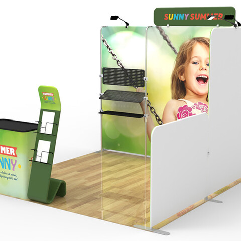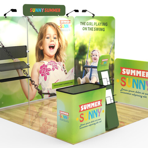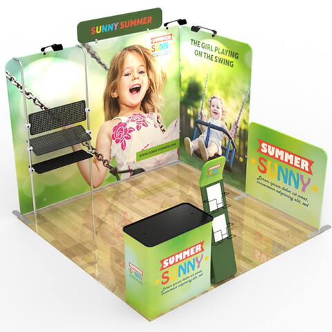 Are you interested in creating an exhibit booth that will be the #1 eye-catcher at your next event? Attract attention and build brand awareness with our custom 10x10ft booth designs. Our aluminum-framed booths are manufactured to be easily transported and dismantled, offering an efficient option for advertising at any event.