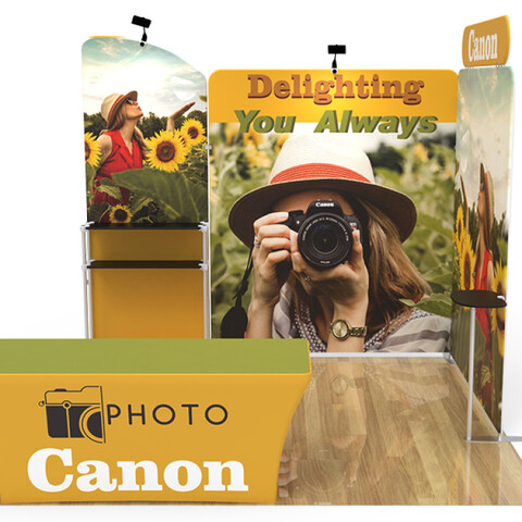 Are you interested in creating an exhibit booth that will be the #1 eye-catcher at your next event? Attract attention and build brand awareness with our custom 10x10ft booth designs. Our aluminum-framed booths are manufactured to be easily transported and dismantled, offering an efficient option for advertising at any event.