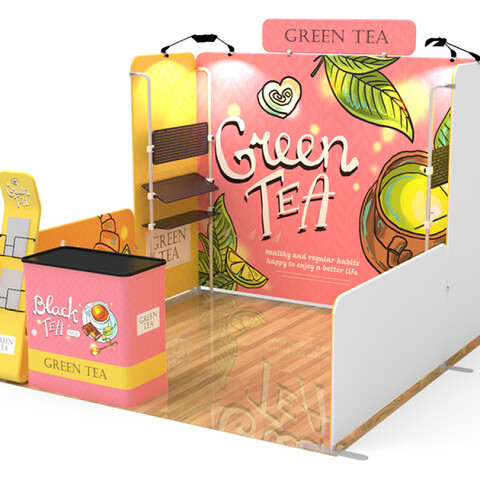 Are you interested in creating an exhibit booth that will be the #1 eye-catcher at your next event? Attract attention and build brand awareness with our custom 10x10ft booth designs. Our aluminum-framed booths are manufactured to be easily transported and dismantled, offering an efficient option for advertising at any event.