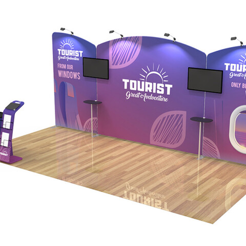 Are you interested in creating an exhibit booth that will be the #1 eye-catcher at your next event? Attract attention and build brand awareness with our custom 10x20ft booth designs. Our aluminum-framed booths are manufactured to be easily transported and dismantled, offering an efficient option for advertising at any event.