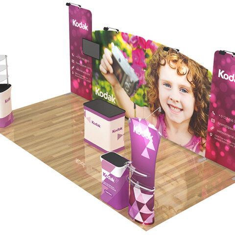 Are you interested in creating an exhibit booth that will be the #1 eye-catcher at your next event? Attract attention and build brand awareness with our custom 10x20ft booth designs. Our aluminum-framed booths are manufactured to be easily transported and dismantled, offering an efficient option for advertising at any event.