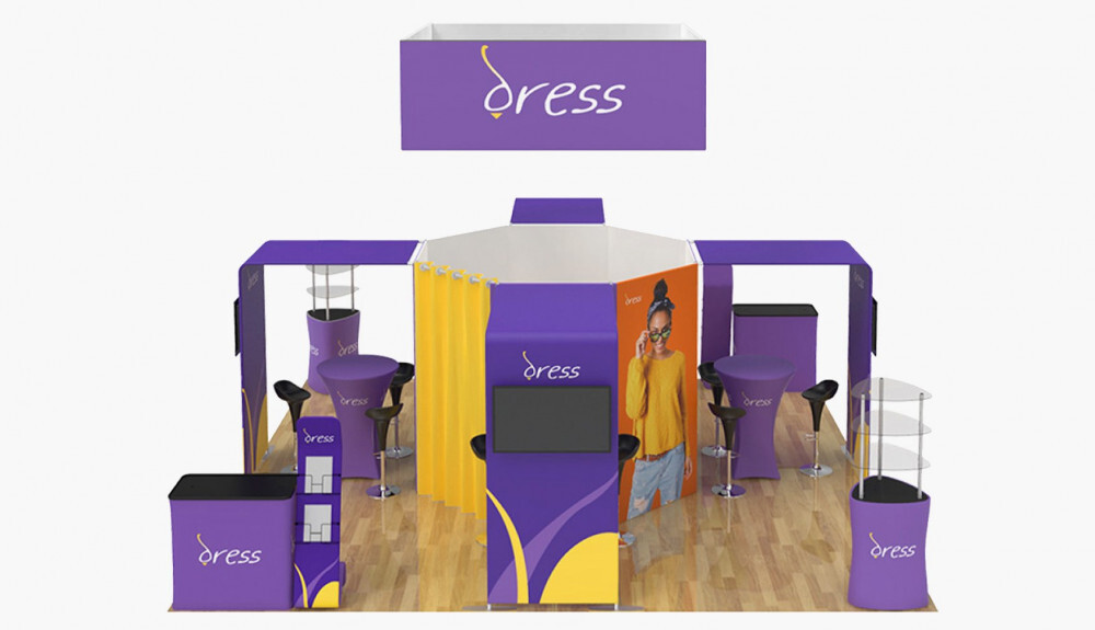 Quick setup accordion style hardware with velcro attached graphics