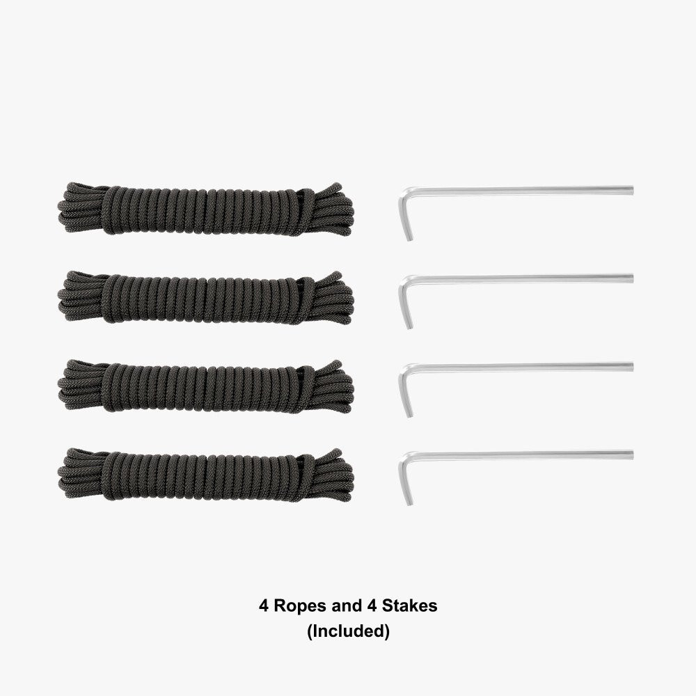 The full wall is connected to the hardware by securing loops around the tent frame.