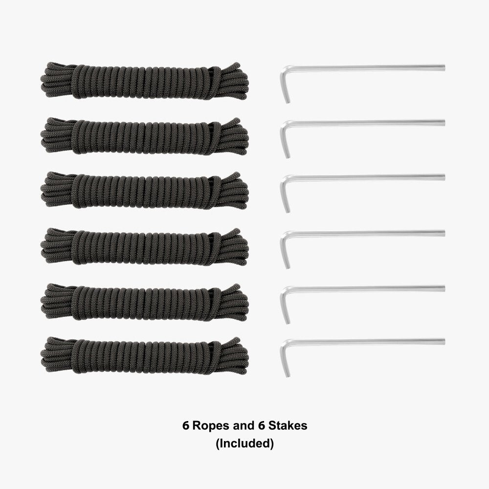The full wall is connected to the hardware by securing loops around the tent frame.