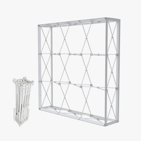 Our Popup hardware makes for quick and easy assembly at tradeshows, events and in-store marketing. The interior LED lights really plus up the backlit fabric prints, adding pop to this Popup display.