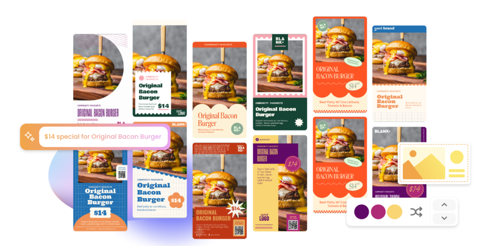 Within one prompt, thousands of templates are at your fingertips. You will have custom-made promotional and menu board designs that align perfectly with your business or brand.