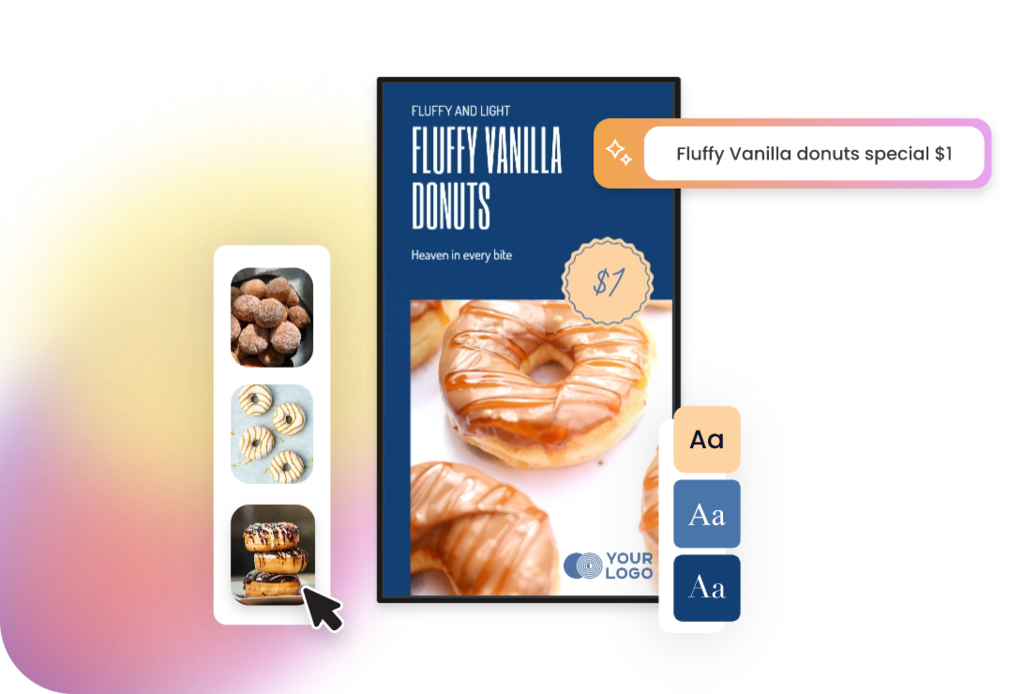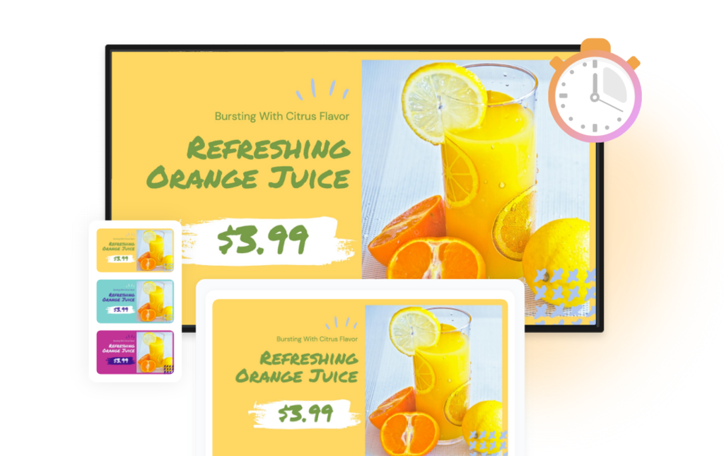With our AI tool, you can produce stunning digital signage within minutes. This means more time to focus on what really matters – running your business and engaging with your customers.
